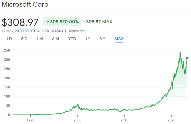 W 1990 roku akcje Microsoft można było nabyć za 0,65 dolara, a w kwietniu 2023 roku były warte ponad 300 dolarów. Kto zainwestował, sporo zarobił. Na przykładzie Microsoft widać, że cierpliwość i inwestycje długoterminowe są w mniejszym stopniu narażone na ryzyko.