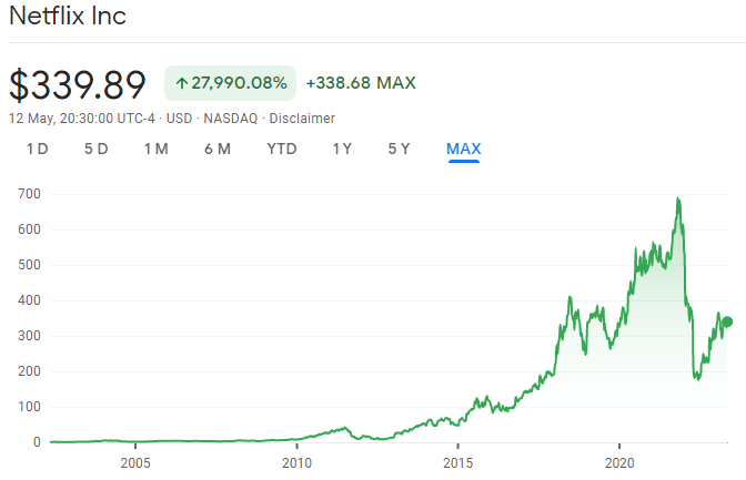 To jedna z najpopularniejszych platform streamingowych na świecie. Serwis VOD dostępny jest w 190 krajach. Dostęp do platformy jest na różnych urządzeniach. Ostatnie lata na giełdzie z pewnością należą do tej spółki, choć zalicza ona również spadki.