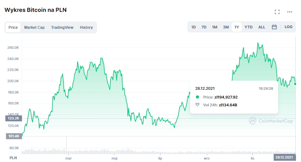 Druga połowa 2021 roku przyniosła rekordowe stawki za Bitcoina, a jeszcze w lipcu był w dołku. W listopadzie 2021 roku kurs Bitcoina poszybował na ponad 230 tys. zł.