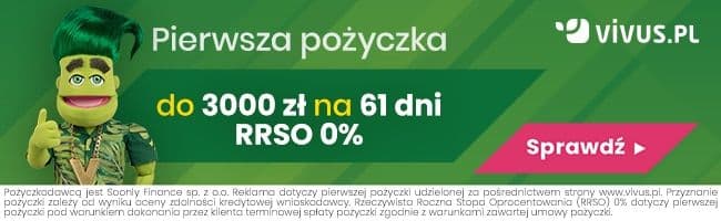 Prowizja w Vivus zależy od wielu czynników, takich jak rodzaj pożyczki, długość trwania zobowiązania i może wynosić nawet do kilkudziesięciu procent. Jednak dla pierwszej pożyczki Vivus oferuje promocję, w ramach której klient nie ponosi żadnych opłat, a RRSO wynosi 0%.
